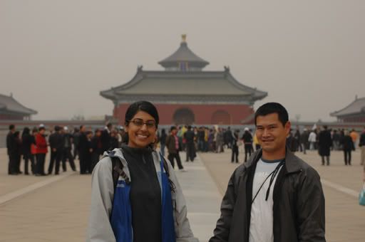 For the most part our experience in Beijing has been a good one. Without much preparation and knowledge of the city before hand, we found the city quite enjoyable and extremely clean despite the annual sand storms that venture down from Mongolia this time of year for a visit. The food was amazing and was extremely cheap. Traffic was smooth but pedestrian crossing required tactful skills of hip and foot. I don’t know what I was thinking, but I had an image of Beijing as a small, compact and interwoven city with alley ways and single family one level homes. Boy I could not have been more wrong! Beijing is a modern western style city with mega-infrastructure (great mass transit system, large avenues and boulevards all with pedestrian and bicycle lanes, vast amount of park space with exercise equipment), large government buildings and office and residential towers of differing architectural style. With a population of over 15 million people and growing, I was disappointed that I could not visit the planning department. The people, especially the older generation were quite curious but never smiling, staring nonstop as we walked by hand in hand. The younger generation was somewhat oblivious of our presence hustling about their daily activities, while the middle aged men and women stared at us with smiling faces and an occasional hello. The four days that we spent in Beijing was just the right amount of time. The language barrier is somewhat of a challenge, as they all think that I am a local. So saying “I do not speak Mandarin” is a strange thing for them to hear. They then usually reply with some thing I really don’t know understand. The best day spent in Beijing, was actually not in Beijing at all. It was spent on the Great Wall of China and boy was that an experience we will both never forget...