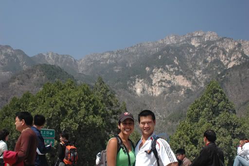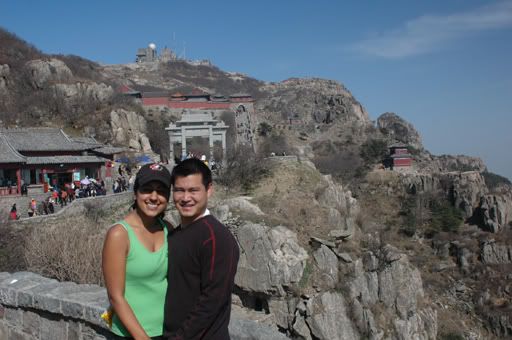 Upon arrival in Tai’an, we were met by our local guide for the next two days, Nancy. She took us to a hotel where we had some time to quickly freshen up and get ready for a large hike up Mt. Taishan. We were to join the pilgrims for this 8 km hike up the mountain which was 1,545m high and consisted of 6,666 steps. Yes, you read right, 6,666 steps. There was an option at the mid way point to catch the gondola up to the very top for those who were not necessarily feeling very energetic after our first 5 action packed days of the tour. Before even starting I was very unsure as to whether or not I would be able to go the whole way to the top as not only was I feeling rather tired from the last few days of activity but I also knew how difficult climbing stairs and elevation were for me because of my asthma problems. I knew without a doubt that Chris was going to climb the mountain to the very top regardless of how tired he was or how steep it was, so really it was just me who would have to make a decision at the half way point.