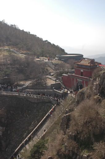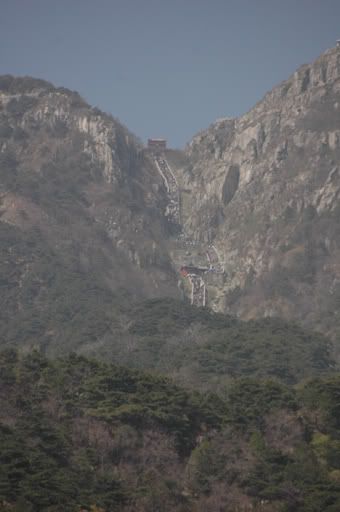 So we all started our journey up the mountain on a gorgeous sunny day looking forward to what lay ahead of us. We had been warned by Jess that the first half of the mountain up to the mid way point would be relatively easy for all of us and it was the 2nd half that would become much more difficult and steeper. Keeping this in mind, we started our pilgrimage up Mt Taishan like they would have done centuries ago. The start of the climb was good as the steps leading up the mountain were nice small concrete steps and along the way were several small temples you could stop to explore and get some rest. Although the nice groomed steps made it easier, it was still a workout for us as the mountain steadily became steeper and steeper. At one point, we had lost sight of the group and figured that meant Jess and some of the others had already taken the turn off to take the gondola up the 2nd half of the mountain (as they had decided in advance they were not going to climb the entire thing). With this in mind and not seeing them behind us, we figured we were close to the top and had already by passed the mid way point without knowing it. This was glorious news to me as I was beginning to get very tired and my legs were starting to feel heavier and heavier with each step. So Chris and I rounded a corner and ahead saw another flight of steps that seemed to end at a landing and we could see some buildings in the distance. I wasn’t 100% we were at the end as these steps seemed to go on and on and on but Chris was sure that we had reached the top. Suffice to say, he was oh so wrong.