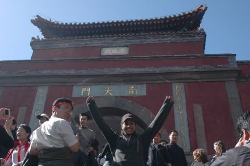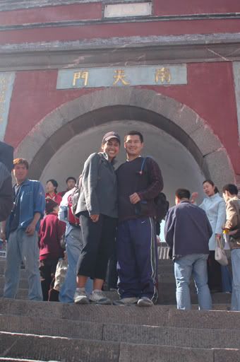 So after the 2 hour climb up the first half of the mountain, we started our way up the 2nd half without a break. We took a few minutes to chat to some other members of our group who were planning on taking the gondola up, took a few pictures and then started the rest of the journey. The 2nd half of the mountain was definitely steeper and there were definitely way more stairs. The stairs seemed to be in longer segments but thankfully there were landings after these long segments for you to stop and take a breather. We took our time and pretty much set a steady pace from the start. We stopped a few times to take a breather, enjoy the scenery and in my case, to just look up the mountain to see how much more we had to go. One or two times I wasn’t sure if I was going to make it as my legs were starting to feel like lead but with Chris’ reassuring words, the knowledge that there was no way off the mountain except to go up, and seeing old men and women walk up the mountain carrying heavy loads, we continued in our mission. We were finally on the very last stage of steps and as we were walking them hand in hand, we looked up and saw Jess’ smiling face. She had promised to wait for those of us who had decided to climb the 2nd half and seeing her at the top was a pleasant surprise. It was like we had someone waiting to cheer us on. With her in sight, we took the last steps quickly and easily and finally reached the top after an amazing 1 hour and 20 minutes. Reaching the top was pure elation. It felt so great to have climbed the entire mountain and felt like a pure accomplishment for the both of us. We hugged each other in celebration of our feat and made our way through the victory gate to the other side to explore this famous and holy mountain.