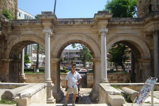 We spent the afternoon walking to the above sights as everything is within walking distance. We wandered through the streets of the Old Quarter (where you can easily get lost as there are no street signs and the streets wind in and out and around one another it seems) where most of the hotels and pensions could be found along with locals selling their handicrafts and small restaurants and cafes. Along the way, we came across Hadrian’s Gate, built to honor the visit of Emperor Hadrian in AD 130. The interesting part of this historic remain was that for years, it was encased in the Seljuk city wall and was only uncovered recently in the 1950’s. Other historic landmarks close by were the Clock Tower which marks the upper limit of the Old Town and long ago was a part of the city’s defensive system and the Fluted Minaret which is a 13th century minaret which has become known as the symbol of Antalya.