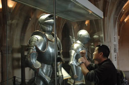 We were greeted by some knights and Chris tried to pick a fightWe ventured through the entire castle, each room had a myriad of artifacts about the history of the castle, from the different tapestry that once adorned the rooms, to the workings of the kitchen, and the servant quarters and the sub-terrain tavern. My favorite was the room filled with models of the different architectural transitions of the castle from its primitive period to the Romanesque, Gothic and the Renaissance influences.