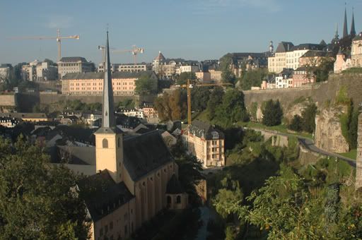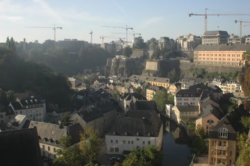 Another area of the Grund with all of the cranes in the back ground. I wonder what Luxembourg will look like in the futureLuxembourg was yet another gem that we had found. The size of the city was small compared to some of the other capitals that we have visited in Europe, but it’s stunning landscape and the mix of old and new architecture appears to have been touched by an artist. It is a magical place that has kept and cherished its rich architectural diversity while making way for the new. If some of the above postings are any indication of sensitivity and artistry that are fostered here, there is no doubt that all of the currently erect cranes throughout the city will continue to build more beautiful creations. It was a walk worth missing sleep for.