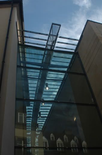 A great addition to the Palace of Justice – The current wall of glass really works well here as the reflection of the buildings on the opposite side of the alleyway appears to keep the continuity of the surrounding building even though the new glazing system commands your complete attention
