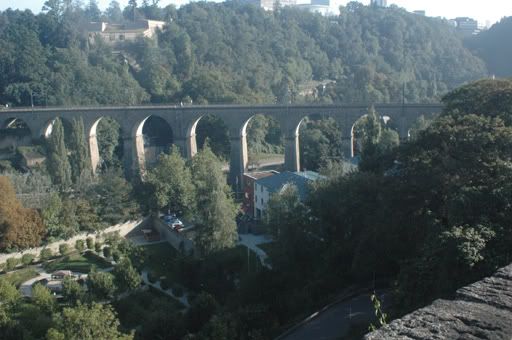 Luxembourg was really a transition point between Belgium and France. Since we had already visited Strasbourg we decided to venture to Luxembourg country # 16 of our world tour. We arrived at about 10 am on Thursday and were greeted by the warm weather, a welcome change to the mild, cloudy and rainy regions of Northern Belgium. Although the city itself was rather small, it was a bit of a hike from the train station into the center of town, and we could not help but notice the dramatic change in the fewer number of hotels and restaurants. Needless to say it was a little bit of a battle to find affordable accommodation for our stint here. As we wandered through the streets searching for a hotel, I could not help but notice the dramatic scenery that encompasses this city. It was a beautiful site to see despite the fear of not being able to find any accommodation within our budget.