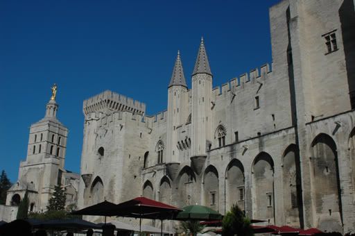 We arrived a little after lunch and were greeted by sunny blue skies and HOT weather, a pleasant change from the cloudy skies in Belgium and Luxembourg. Our first task was to find a place to stay. We had decided to take a bit of a break from the constant moving around and to stay in Avignon for 2 nights even though we knew we’d be able to see all the major sites in one evening. We found a great room in a one star hotel at Hotel Innova for a price of 47 Euros a night. We checked in, put on our summer clothes and headed out to the streets of Avignon.