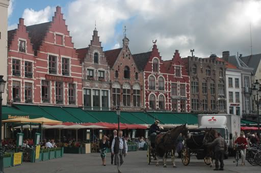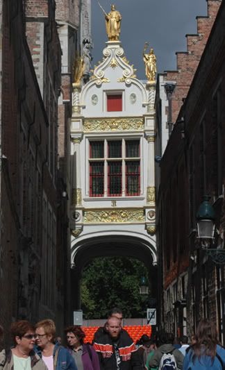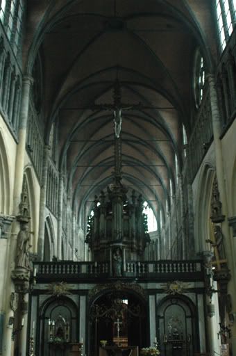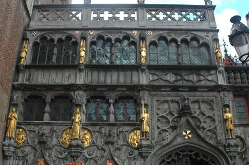 The Heilig Bloed Basiliek can be found in the southwest corner of the Burg and is the Basilica of the Holy Blood as it holds one of the most sacred relics in Europe – a sacred phial which is supposed to contain a few drops of blood and water washed from the body of Christ by Joseph of Arimathea. It is said that the phial was brought to Bruges from Jerusalem by a Flemish Crusader, Diederik of Alsace in 1150 and is still the object of great veneration. Chris and I are not very religious but we entered the church and did walk up to the altar where a priest was sitting with the phial of blood and wiping the glass down after each person placed their hand on the flask and performed a prayer. As I walked up to the phial, recollections and scenes from the movie, Passion of the Christ, came into my head. The unwarranted pain and torture that Jesus Christ was put through kept flashing before my eyes and I couldn’t help but be in awe at the fact that here I was placing my hand on a vial of his blood. Blood that was shed for no reason and was shed for the greater good of people. I made a small prayer and continued on my way. This church was very overpowering, more so than many of the others I have been in. I am not sure if it was the phial itself, the images I was having in my head or the main altar, which was quite intense. Whatever it was, Chris and I sat in the church for quite some time. No words had to be said, we were just pondering the past and what it must have all been like.