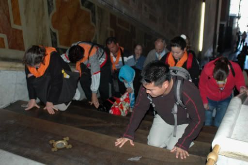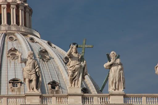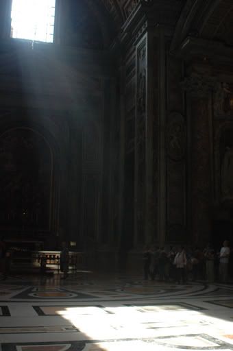 The basilica that we see today is the same one that was artistically created back in the days of the high Renaissance period. Construction of the new basilica took place in the early 16th century and took 176 years to complete. Although the design of St. Peter’s Basilica changed hands many times and thus went through many iterations during the course of it’s construction, one thing remained constant - that is the underlying theme to overwhelm the masses. To do this, the architects used their vast knowledge of perspectives and manipulated this in such a way to make the appearance of this holy place attainable by the general public. As the holiest church in the entire western world, St. Peter’s Basilica is perhaps not only the tallest, the biggest but also the grandest of them all. However, the overall size of St. Peter’s Basilica is not really fully rationalized by the general public, as statues of the 12 Apostles adorning the exterior front façade of the basilica are three times larger than that of an average man, and the Saints that stand on top of Bernini’s colonnade are twice the size of an average man. This manipulation on scale distorts the overall perspective of the entire basilica as a whole making the viewer think that the space that they are standing in seem not as big as it really is. In a true perspective, the statues of the Apostles and Saints if designed at true human scale would appear to be much smaller due to the fact that they stand at 55m (equivalent to a 17 story building) above the ground. Perhaps this was done to illustrate the pilgrim’s relationship to God – the perception of the physical distance between the viewer and god is greatly reduced by the enlargement of the apostles and saints. The magnificent basilica becomes even more impressive as you enter into the interior spaces of the church. The décor and plays of light and darkness appeal to your overall senses and the majestic space under the dome is one of pure awe. Words can only say so much… so here are some of our pictures from the day we visited St. Peter’s Basilica.