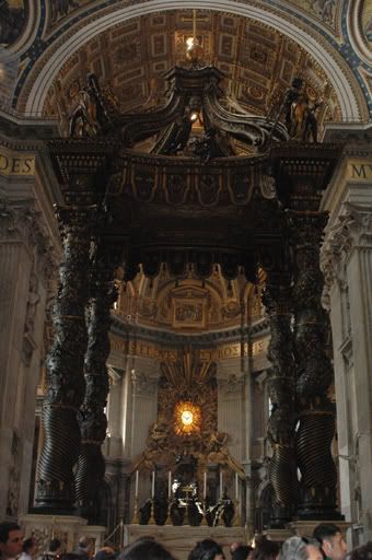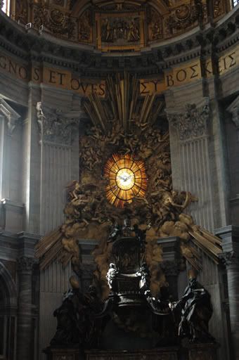 Like all churches, this church is dedicated not to the living but to the dead. Here, saints and popes are laid to rest where millions upon millions of pilgrims congregate each year. The spiritual nature of St. Peter’s Basilica is embodied within and around the building itself. Bernini et al have created the ultimate shrine to elicit the power of the Father, the Son, and the Holy Spirit, but more importantly, in that of Man. As statues of saints remind us of the ultimate sacrifices, it is in death that Jesus shows us the meaning of Life.