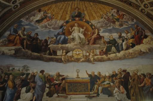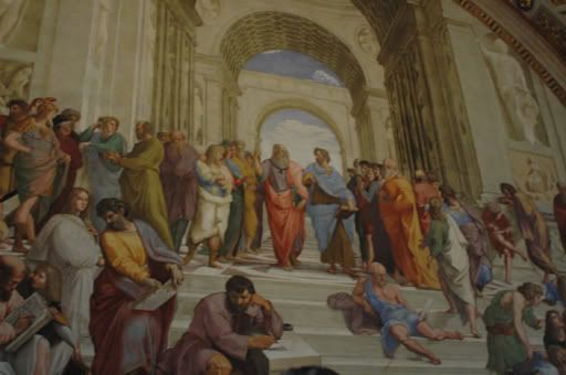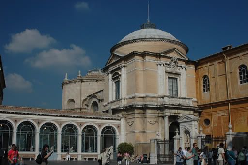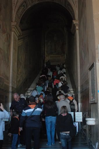 After finding it very difficult to pry Rav away from St. Peter’s, we slowly made our way towards the entrance to the Vatican Museums – an area that covers only 5.5 hectares. We had heard that the line up for the museums can be as long as 2 to 3 hours but we were lucky enough to only have to wait around ½ hour before entering. We were unsure if there would be enough time to see and appreciate all of the work on display as it is a known fact that you can easily spend 12 years here if you spent only 60 seconds with each art piece. That would mean all of our friends would have to subsidize us for the next 12 years of our life…so we decided 2 ½ hours would be enough (but for those of you who are still interested in sponsoring us, please drop us a line at http://chris-rav-abroad.blogspot.com and we can provide you with necessary details).