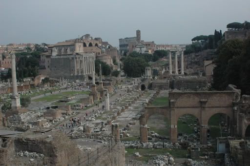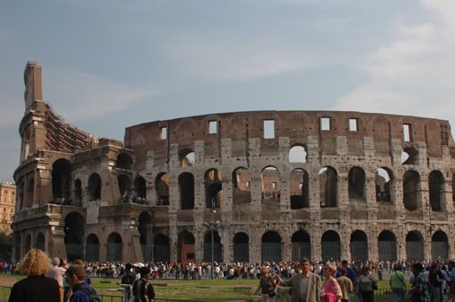 One impressive feature of the ancient ruins of Rome is the fact that it is scattered in a much larger area than most cities we have been to, where the old quarter is concentrated in a small area. The remnants of the splendor of Rome are everywhere, and they continue to find more as excavations are currently underway to add a new metro line into Rome to ease the congestion of daily traffic. The last two subway lines took over twenty years each to build, so I wonder just how long this third one will take. It is ironic that the ancient Romans could build aqueducts as far as Segovia and Constantinople, but the current Romans can not add a new metro line. These massive buildings lie decrepit and decaying in the midst of the lively and energetic activities of 3 million inhabitants. It is this contrast in reality that is most striking, the old and new cohabit within the rich historical context of Rome.