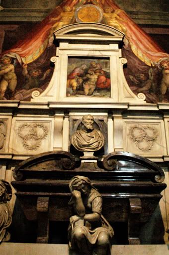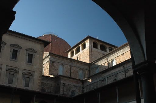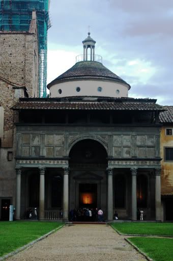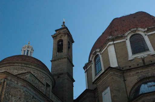 The serene domes and bell tower of the San Lorenzo. The harmonious proportions of the Renaissance were truly impressive and the light that filtered into the altar and nave were quite impressive and the frescos on the ceiling were even more impressive than that of the Duomo. I sat there staring at the dome forever, thinking about the space and the proportions. It was the first time that I realized the true meaning behind proportion and harmony and just how that can be a source of divine inspiration. It was my favorite church in FlorenceSan Lorenzo was first built in the 11th century and was redesigned and added to in the 15th century by masters such as Brunelleschi, Manetti, and even Michelangelo designed the elevation of it although it was never built. However, he did design and build the balcony high up on the inner façade. The rugged yet plain exterior of San Lorenzo was in complete contrast to the interior where double rows of slender Corinthian columns surmounted by rounded arches rhythmically spaced along the nave and the typical grey and white plaster colour scheme combine to create an effect of incomparable harmony and elegance.
