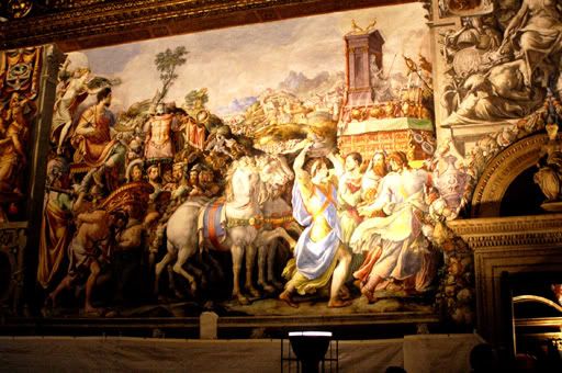 One of the 500 large paintings on the walls and ceilings of the Palazzo Vecchio – this one must have been over 50 feet long and 30 feet high.