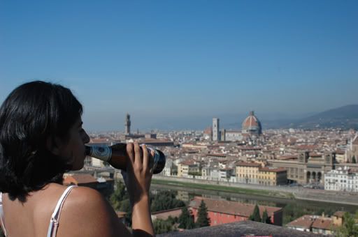 Neevar enjoying a cold one at the Pizza de Michelangelo overlooking the city of Florence