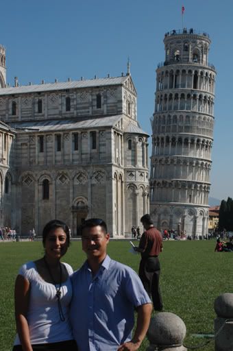 Rav and I at the Cathedral and the Leaning Tower of Pisa – shifting soil is the most favoured explanation for why it leans