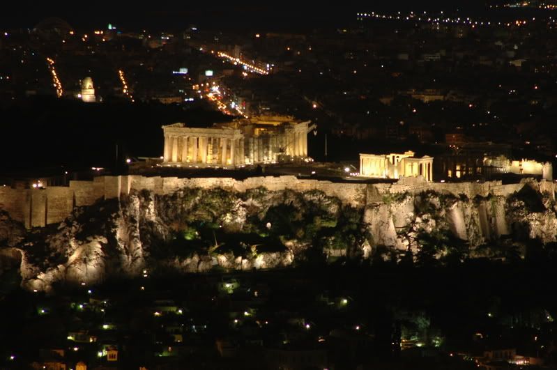 The Partheon from Lykavittos Hill at night what a beautiful view. The sun sets rather early now with daylight savings in effect. It was only 5:40 pm and it was completely dark and the city was beginning to light up