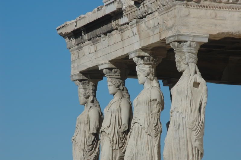 An up close and personal look at the much photographed Caryatids of the Erechtheion. These are made from plaster casts, the originals are in the Acropolis Museum