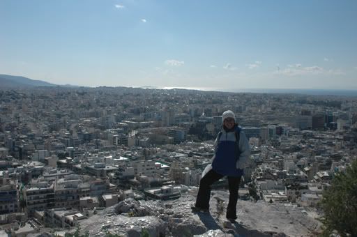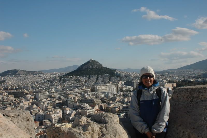 Rav with a great view of Lykavittos Hill that we climbed the night before