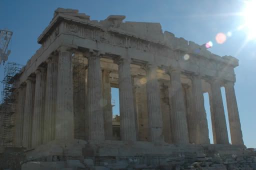 What’s left of the Partheon, not too bad for being 4000 years old. The temple still exudes grace and harmony. To achieve perfect form, its lines were curved to counteract optical illusions. The columns are slightly smaller at the top to achieve the overall effect of making them look straight