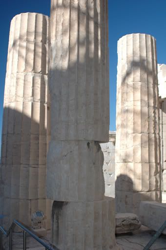 Shifting column at the Temple of Athena Nike at the main entrance to the Acropolis. Much of this temple is under renovation and we could not see much other than columns